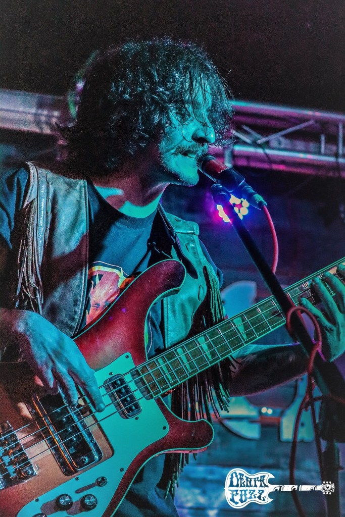 Indudablemente ACID MESS son una de las bandas con más calidad del panorama nacional y eso quedaba patente con los constantes cambios de registro que ofrecían en su show. La fusión de ritmos con la dualidad de batería y percusión hacía que ‘Infierno gris’ se adornara de sonidos caribeños entre sus fornidos riffs en una nueva explosión sónica que dejaba al personal extasiado. Entre sonidos progresivos de carácter monumental ‘Hechicera’ terminaba de hipnotizar a aquellos que todavía no lo estaban. Pasajes en los que el rock progresivo nos envolvía entre el sonido vintage del órgano y riffs que explotaban constantemente conjugando calma y fuerza. Si bien el público permanecía en sus asientos, el personal de la Sala estaba siempre pendiente para servir las bebidas en las localidades que cada uno ocupábamos evitando así que el personal abandonara sus sillas para ir a la barra, lo cual en estas circunstancias es algo tremendamente acertado y por otro lado necesario para el buen desarrollo del show. Con un Borja poseido, su voz alternativa y la hipnótica línea de su bajo nos trasladaban a los noventa con ‘Hijos del Sol’.