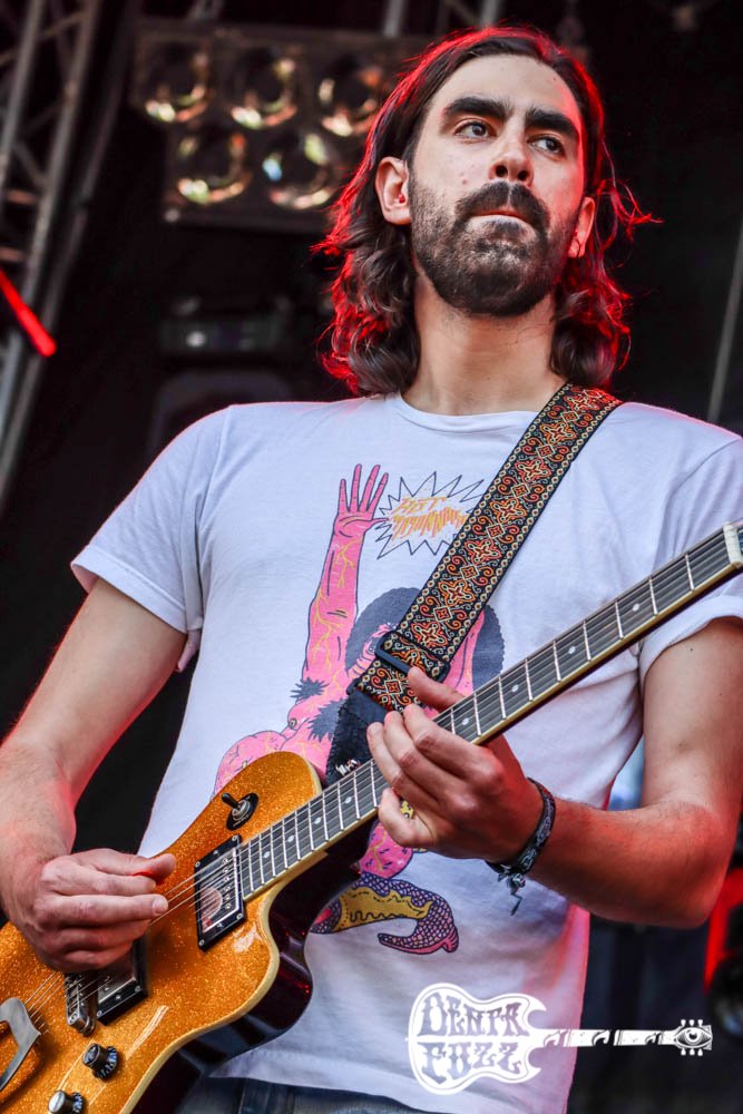 Era el momento de los sintetizadores en loop que se alargaban entre los cadentes tambores para arrancar con ‘Repeater’. Trece minutos de éxtasis en los que los sintetizadores de su guitarra y su bajista se iban alternado creando una atmósfera nebulosa que seguramente hubiera sido apoteósica en la oscuridad de la noche arropada por luces y proyecciones, pero que en mitad de la tarde no desmerecía en absoluto. En este tema KING BUFFALO ofrecía sus momentos más experimentales entre etéreas melodías ensoñadoras que relajaban los sentidos de una audiencia con caras de felicidad. El público enganchado por completo entre los sutiles ritmos llenos de hipnotismo y los efectos constantes. Todo un trace que hacía que mi cámara se dirigiera hacia el público para captar como se sucedían los episodios de crowdsurfing y captara como mi amiga Paula sobrevolaba las cabezas del personal en pleno éxtasis. El tema suponía todo un hechizo sonoro para los presentes deparando los momentos más mágicos de todo el álbum. Si ‘Repeater’ era uno de los temas más alabado KING BUFFALO, en este álbum alcanza unas cotas de majestuosidad que hacen que ‘El Rey Buffalo’ se coronara como el auténtico ‘Rey’ de la pasada edición de Freak Valley Festival. Sencillamente apoteósico. Potente, pesado, psicodélico, ensoñador, melódico, mágico.