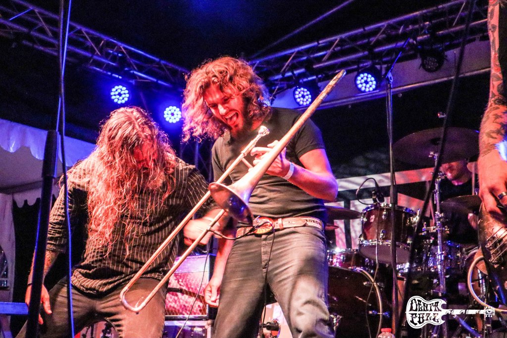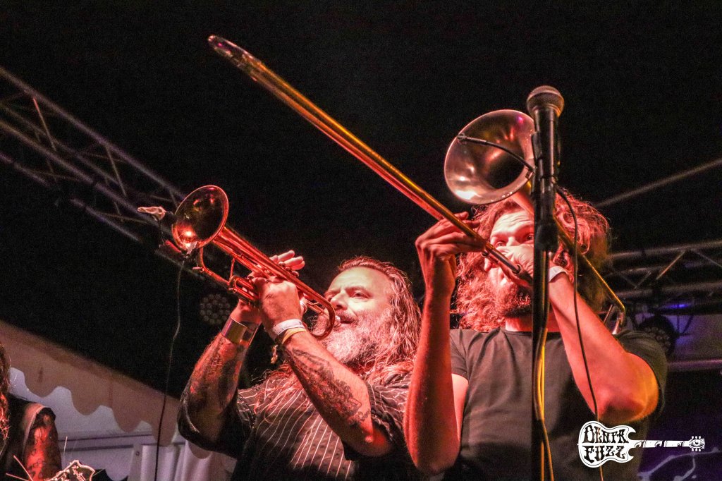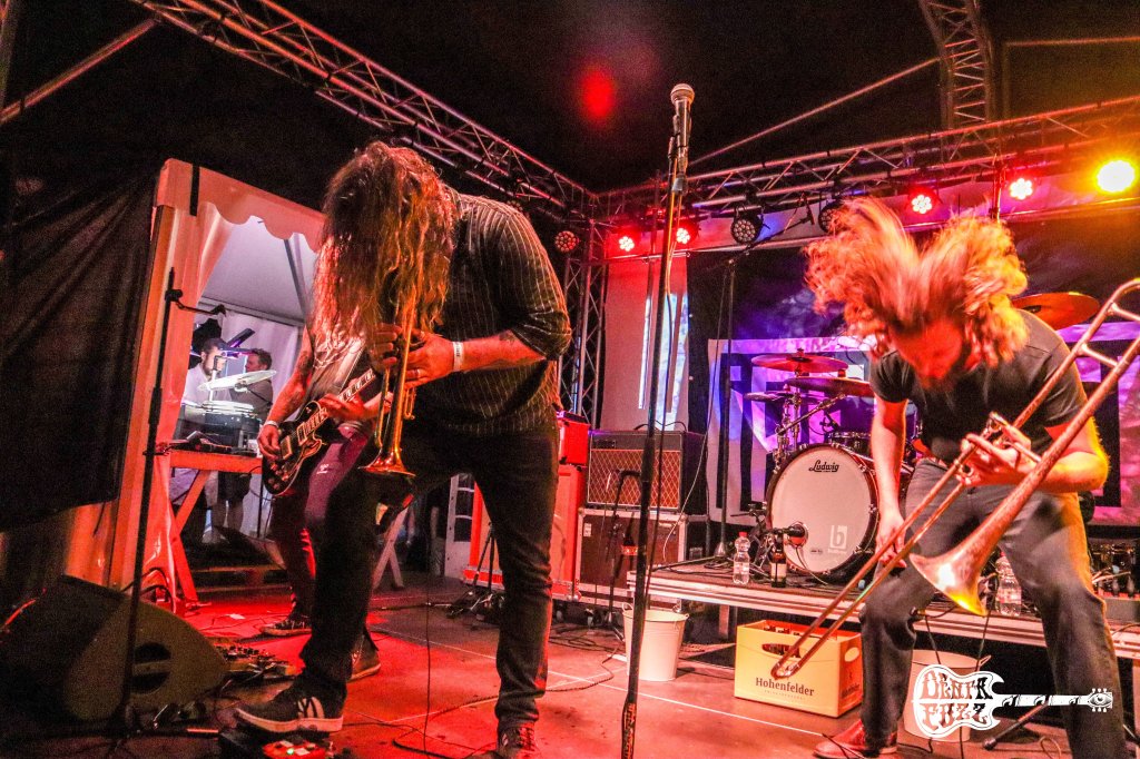 El festival iba llegando a su fin, pero todavía nos quedaba la fiesta de los holandeses Pendej0!. Tuve la sensación de que no eran una banda muy conocida entre los presentes, pero yo tenía claro que iban a ponerlo todo pajas arriba, como finalmente sucedió. Lo ecléctico de tocar Stoner con trompetas puede resultar algo curioso, pero cuando ves a estos chicos en directo, siempre quieres mas. Ellos saben como incentivar al público para que se divierta, y su loca actuación en Krach am Bach lo corroboró. Su cantante El pastuso, sabe bien como meterse al publico en el bolsillo y sus ‘Vamos carajos’ recibieron la respuesta de un público que enloquecía por momentos con pogos y bailes frenéticos.