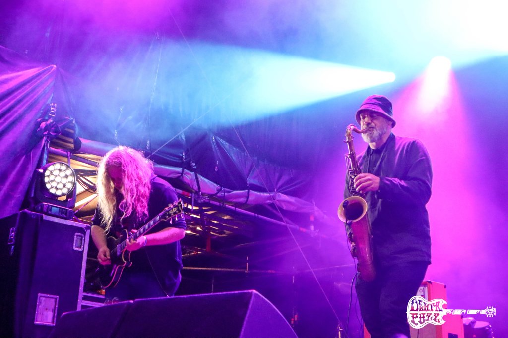 La jornada terminaba, pero todavía nos quedaba un plato fuerte que degustar. Los daneses MYTHIC SUNSHIP llegaban con todo su arsenal preparado para crear el caos. La banda ejecutaba una actuación en la que el jazz y la experimentación psicodélica alcanzaba cotas de alto nivel. Puede que su complejo sonido no sea para todos los públicos, pero los asistentes al festival pudieron disfrutar de una actuación intensa y ensoñadora a la vez. Estos chicos tienen mucha calidad, y sin hacer mucho ruido, desplegaban todo su arsenal en una sobresaliente actuación. Por fin conseguía quitarme la espina de verlos en directo y su actuación, resultó finalmente como había esperado, mágica.