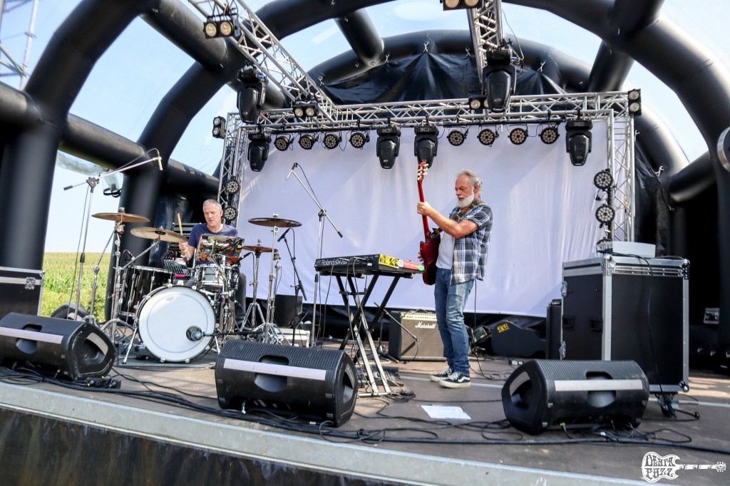 Los berlineses ROTOR se presentaban en formato trio. Era la primera que veía a la banda en directo con un solo guitarrista y mi curiosidad era máxima. Con un pequeño retraso sobre el horario previsto los de Berlín iniciaban su actuación atrayendo al público hacia el escenario como un potente imán. Aunque la ubicación del escenario en el recinto permitía a la gente sentarse en la yerba en diferentes espacios, algunas partes del recinto recibían la sombra y las carpas dejaban de ser un espacio exclusivo para protegerse del influjo del astro rey. En algunos momentos podía protegerme del sol en el foto-pic, ante la envidia de los amigos que estaban en primera fila que aguantaban hidratándose constantemente. He visto en directo multitud de veces a Rotor, pero no recuerdo si alguna vez lo hice con tres miembros. Evidentemente su calidad como músicos y como banda sólida, no me generaba ninguna inquietud. Desde el inicio de su show, aquello sonaba increíble y posiblemente algo más pesado de lo habitual. La banda venia con su habitual técnico de sonido Roland, que siempre es garantía de que todo sobraba bien. Una vez más, ROTOR pasaban el examen con una nota muy alta, como demostraba la gran ovación con la que fueron despedidos tras su poderosa actuación.