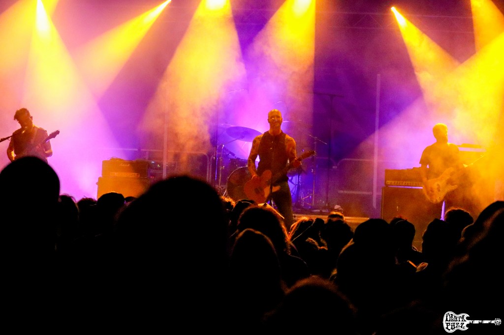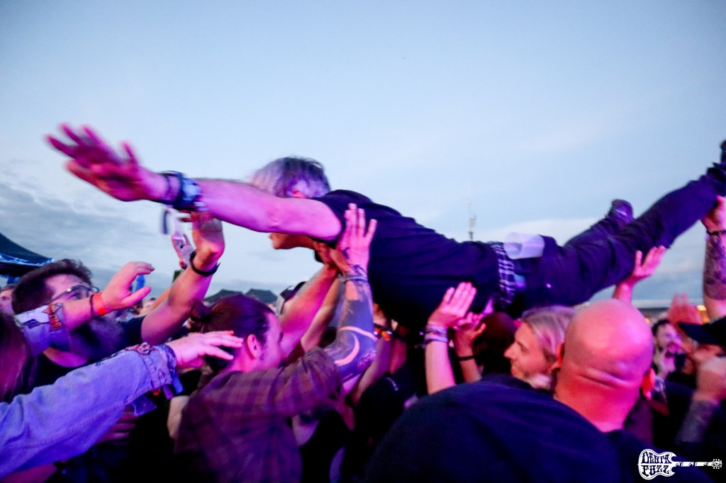 La tormenta arreciaba y la banda checa ACID ROW iba a cernir sus particulares nubarrones entre momentos heavy-psych y golpes de Stoner doom. Su contundente sonido conectaba con una audiencia cada vez más ardiente. Melenas al viento, distorsiones y guitarra chirriantes marcan un show en el que ofrecieron una imagen más contundente de lo que había podido apreciar en sus discos. El comienzo de los pogos y los episodios de crowdsurfing se iniciaban en una jornada en la que ya no había vuelta atrás.