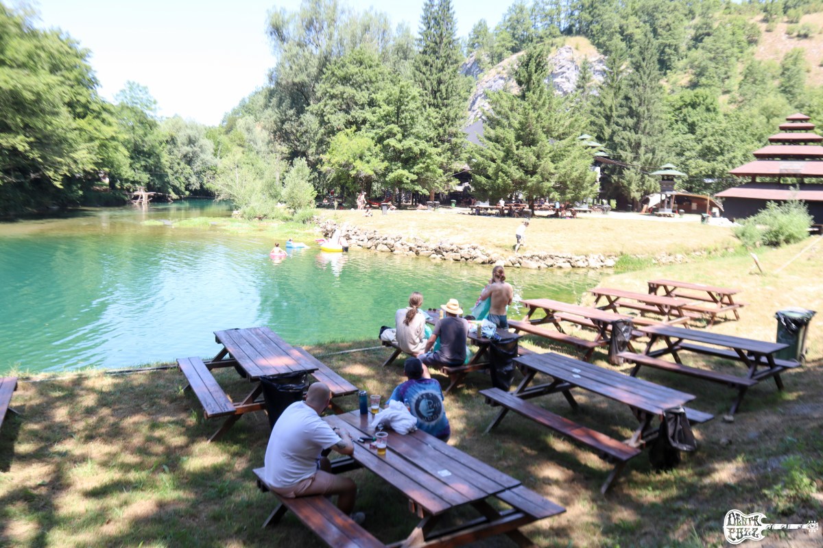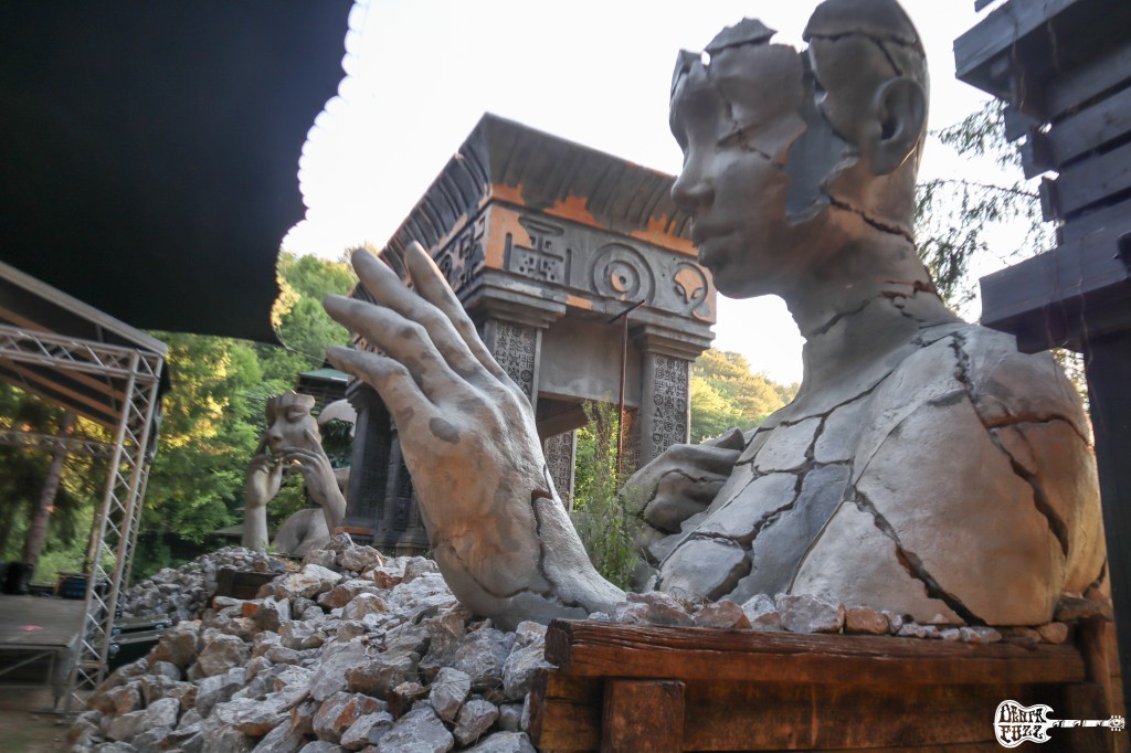 El tour de festivales veraniegos continua y llegaba el momento de dirigirme hacia Croacia para vivir la experiencia del BEAR STONE FESTIVAL. Después de un par de días el lago Bled, en los Alpes Julianos en Eslovenia (que bello lugar), me dirigí hacia la localidad croata de Slunj. Llegué dos días antes del comienzo del festival ya que la hospitalidad de Marin, el artificié del festival, me permitió acampar allí, y así poder recorrer alguna de las maravillas que ofrece el país. A mi llegada uno de los trabajadores del festival llamó a al propio Marin que de inmediato me recibió mostrándome con detalle el lugar y ofreciéndome mi acreditación, así como numerosos tokens para la comida y la bebida. No hay mejor manera de ser recibido. Al entrar al espacio donde se celebra el festival mi primera palabra fue ‘wow’. ¡¡Qué maravilla!! Un lugar idílico con el rio ramificándose entre pequeños saltos de agua y cascadas junto a praderas a su alrededor. Mi primera sorpresa fue comprobar que, a dos días del comienzo del festival, ya estaban ubicados tantos lo servicios como las duchas así como los stands de comida y bebida. Cuidando del medio ambiente con un sistema de compostaje el festival colabora a preservar ese entorno natural tan salvaje. Carpas enormes, bancos, stands para el merchan, y sobre todo unas enormes esculturas y estructuras arropando el segundo escenario ‘jam stage’ Como si hubiera llegado a un templo perdido en la jungla a semejanza de los que hemos tantas veces visto en películas como Indiana Jones, aquel entorno insuperable era perfecto para compaginarlo con el gran cartel que ofrecía el festival. Ciertamente el line-up de la presente edición nada tiene que envidiar a ninguno de los festivales mas famosos de la escena europea. Me tomé la tarde para empaparme de todos los detalles, y cada uno de ellos era más impresionante. La zona de acampada estaba situada a unos 400 metros del recinto y sin duda, aquella pradera que yo vi vacía, era capaz de albergar a un buen numero de visitantes. Existe una segunda zona de acampada, así como un aparcamiento algo mas alejado del recinto para aquellos que solo visitan el festival un día y no usan la zona del campsite. En los alrededores en medio del bosque ladera arriba, me tope con otro recinto en el que se celebra otro festival con una decoración impactante. Nuevas esculturas descomunales y adornos de ensueño, así como un recinto perfectamente acondicionado en una zona en la que se practica deporte de aventura. Es sorprendente encontrarse estos recintos así, alejados por completo de la civilización, curioso, y especial, sin duda. Aproveché la tarde para visitar la localidad de Slunj, a unos diecisiete kilómetros del festival, siendo la localidad más cercana al lugar en el que se celebra el mismo. Allí de nuevo la belleza en formas de mil cascadas y brazos del rio formaban un paisaje más propio de una ciudad de Elfos. Impresionante. Tras ese cúmulo de emociones me retiré en soledad al lugar que la organización me había reservado en la zona de estancia de las bandas, a escaso metros del recinto de concierto. Cayéndome la noche encima y con mi ordenador bajo los árboles escuchando el lento fluir del rio y los grillos, una diminuta luz me sorprendió en la noche. Pero no era una solo, sino varias que cambiaban de lugar y que procedían de un grupo de luciérnagas que me iban a acompañar en la soledad de la noche, un momento fantástico e inusual. El día previo al festival visitaba un lugar increíble a tan solo 45 minutos del recinto del festival. El Parque Nacional de Pretvice, un regalo de la naturaleza para el disfrute de los humanos. Lleno de mil casadas y una gran cantidad de lagos es el ejemplo de lo caprichosa y hermosa que es la naturaleza. A mi regreso ya llegaban los primeros campistas a la zona de acampada. Caras de ilusión por vivir un fin de semana inolvidable. En el recinto los preparativos avanzaban y ya se podía ver multitud de papeleras en el recinto y más cantidad de servicios, todo un ejemplo a seguir. Al caer la noche las pizzas recién salidas del horno cargaban de energía a todo el equipo que continuaba trabajando duramente para ofrecer la mejor versión del festival a sus visitantes. En un ambiente relajado la gente iba llegando al recinto, mientras una banda amenizaba la llegada del personal con una larga jam.