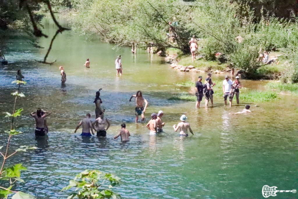 Con la alta temperatura y el rio tentando, muchos se inclinaban por mitigar el calor dándose un buen baño. Colchonetas y flotadores acompañaban este refrescante momento mientras en el jam stage la música fluida de forma espontánea amenizando la espera hasta el comienzo oficial del festival. El evento se podría definir como experiencia completa en la que, con la música como protagonista, el contacto con la naturaleza en un ambiente lúdico hace que el fin de semana en BEAR STONE sea una experiencia inolvidable. Existe un elemento importante, en el recinto no existe conexión a internet ni cobertura de teléfono, por lo que las relaciones interpersonales no se ven afectadas por este objeto que a veces se convierte en algo malévolo. Así mismo los pagos en bares y food-tracks y merchan han de realizarse en efectivo. En definitiva es como una vuelta a los festivales que viví en mi adolescencia en los que las redes sociales y toda la tecnología contemporánea brillan por su ausencia para dejar que las emociones humanas surjan espontáneamente.