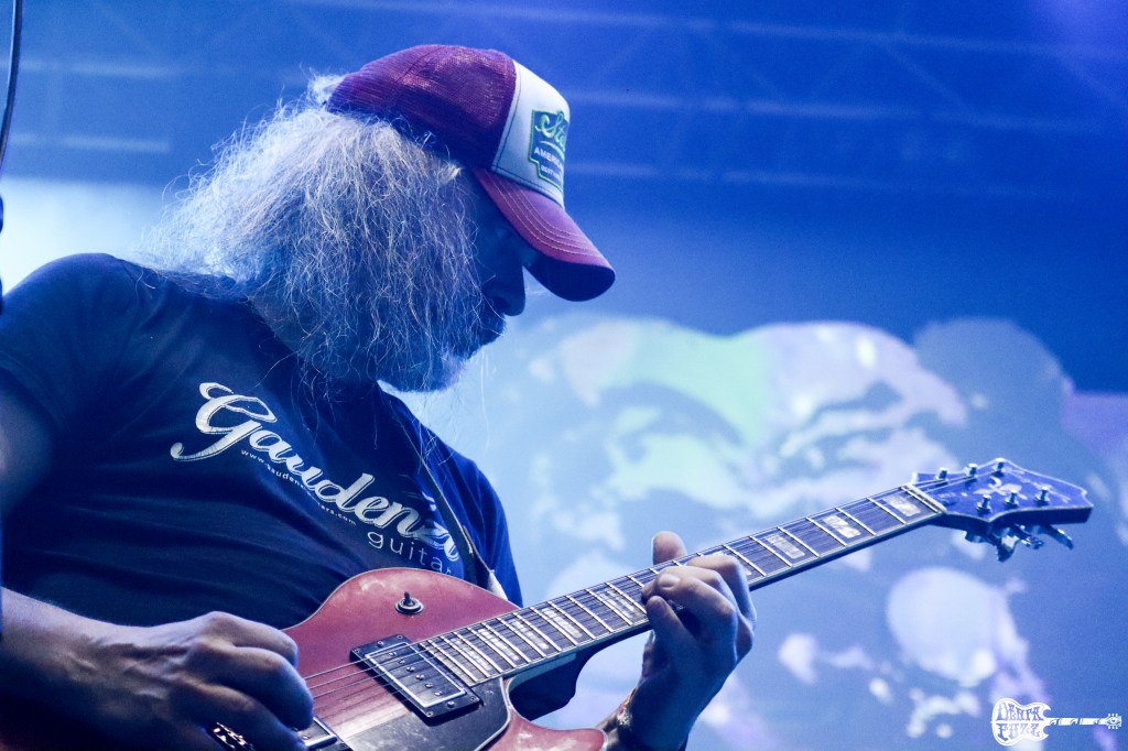 Con el recinto a rebosar la leyenda del desierto BRANT BJORK aparecía acompañado del genuino Mario Lalli y el siempre fiable Mike a los tambores. El groovy estaba asegurado para deleie de una audiencia que abarrotaba el Stone stage. Entre un humo persistente que impedía ver con nitidez a los músicos y especialmente los visuales que Sector7G había preparado el californiano y sus compinches cumplieron las expectativas que de ellos se pueden tener. Rock del desierto que te atrapa entre humeantes pasajes. El trio se despedía ante la petición de más canciones de la audiencia, pero el retraso ocasionado por la tormenta había trastocado algo los horarios.