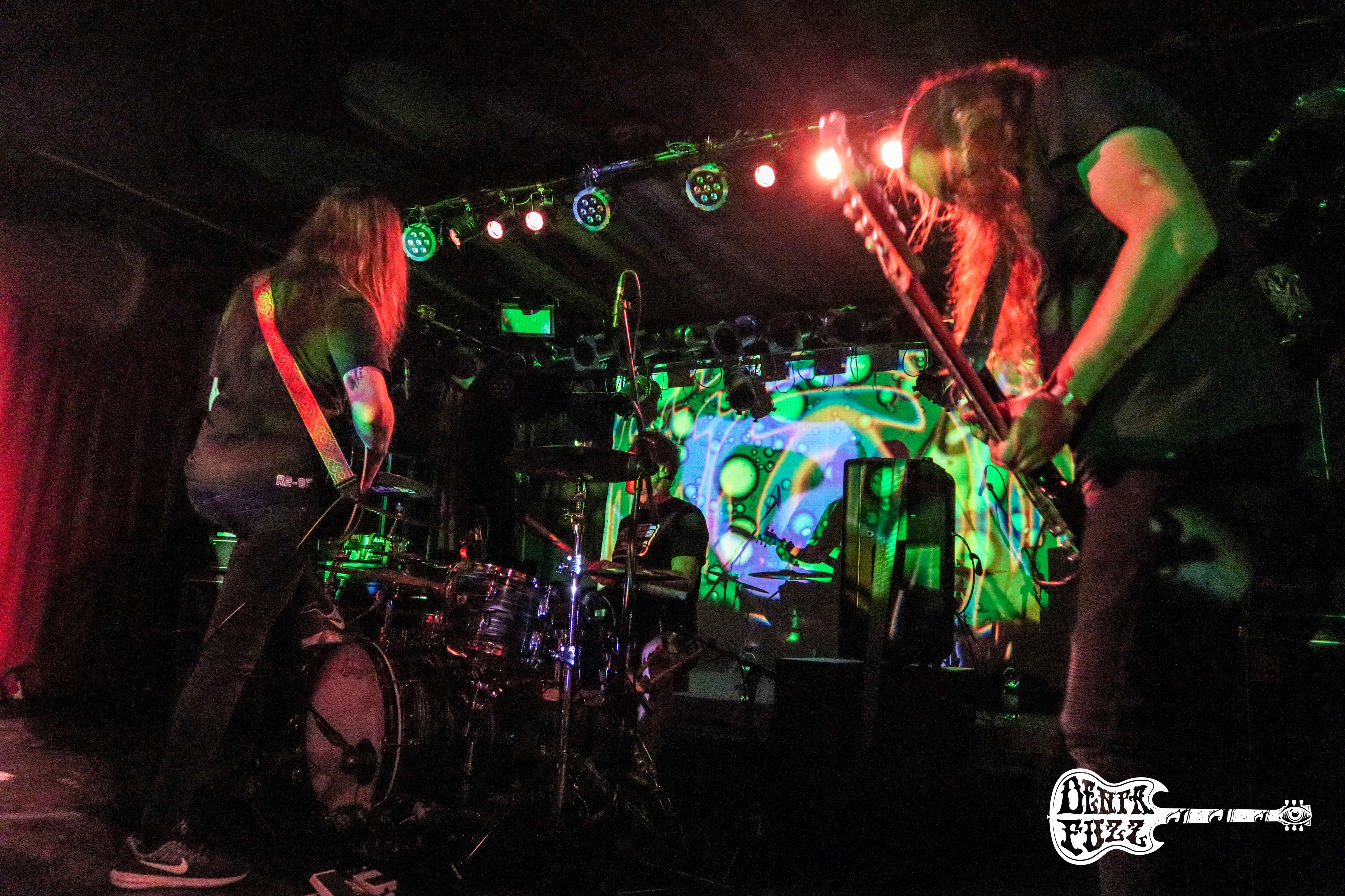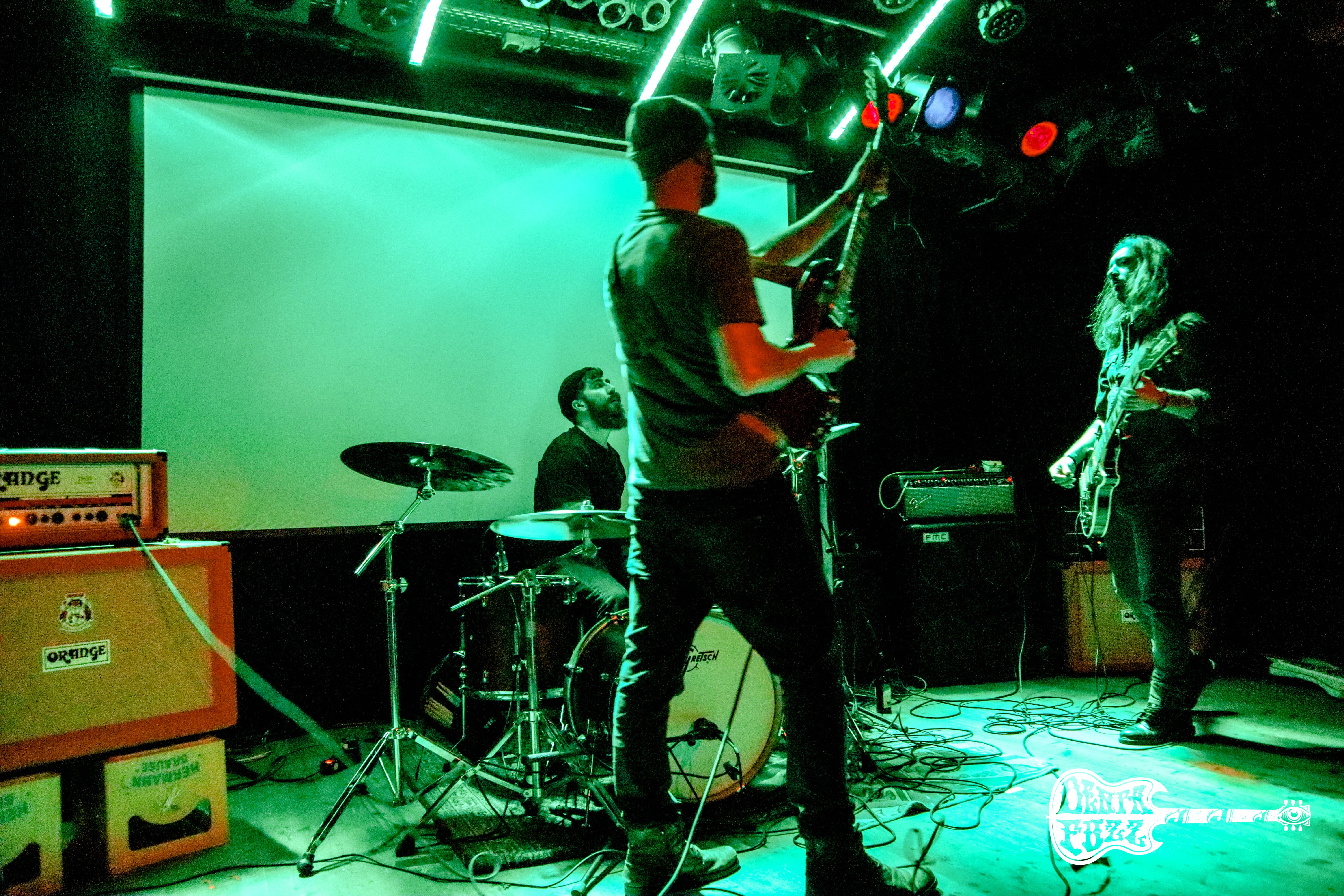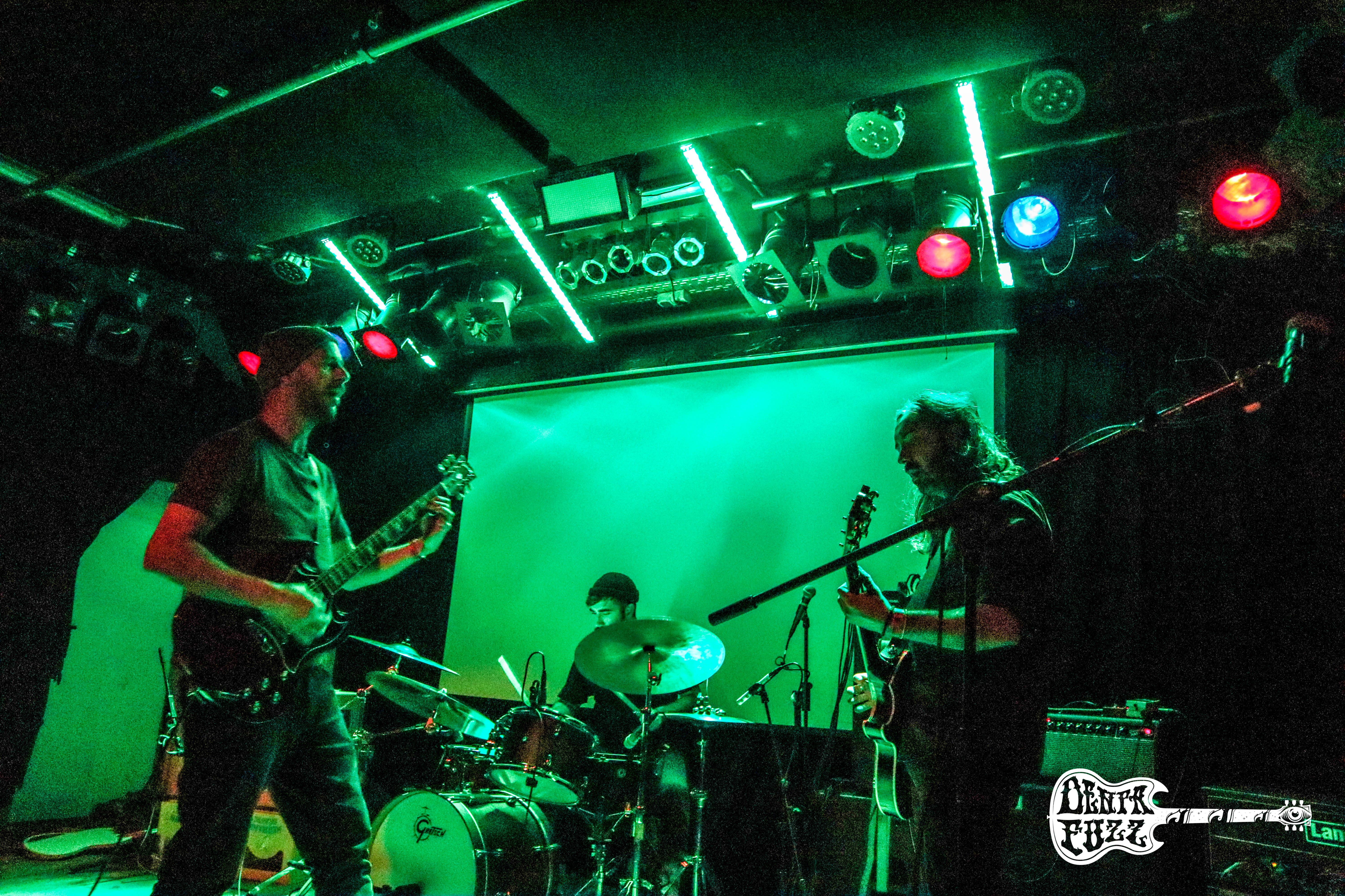 BISMUT eran los encargados de abrir la jornada alrededor de las 8.30 de la noche. El trío holandés dejaba patente que son una banda solvente y asentada, que se está convirtiendo en una formación a tener en cuenta en la escena heavy-psych europea. Sus oscuros viajes lisérgicos eran custodiados por momentos de post-metal, en los que ponían el músculo a sus largos pasajes instrumentales. Hacía poco menos de un mes había tenido la ocasión de ver en directo a los holandeses en el marco del Desertfest Amberes. En aquella ocasión la banda tocaba en el escenario pequeño, y a pesar de realizar un notable show, aquí, pudo desarrollar toda valía. La ambientación del light-show de Peter encajaba perfectamente con el sonido psicotrópico de la banda, lo cual suponía un plus para que su actuación fuera fantástica. Perfectamente equilibrados y sin ningún tipo de artificio, los tambores de Peter retumbaban con una ejecución milimétrica de los ritmos. Los devaneos y solos de guitarra ácida se complementaban con un sonido grueso de su bajista Huibert. De esta manera encandilaban a una audiencia que disfrutaba con su psicodélico espectáculo, llevándonos a un trance catártico.