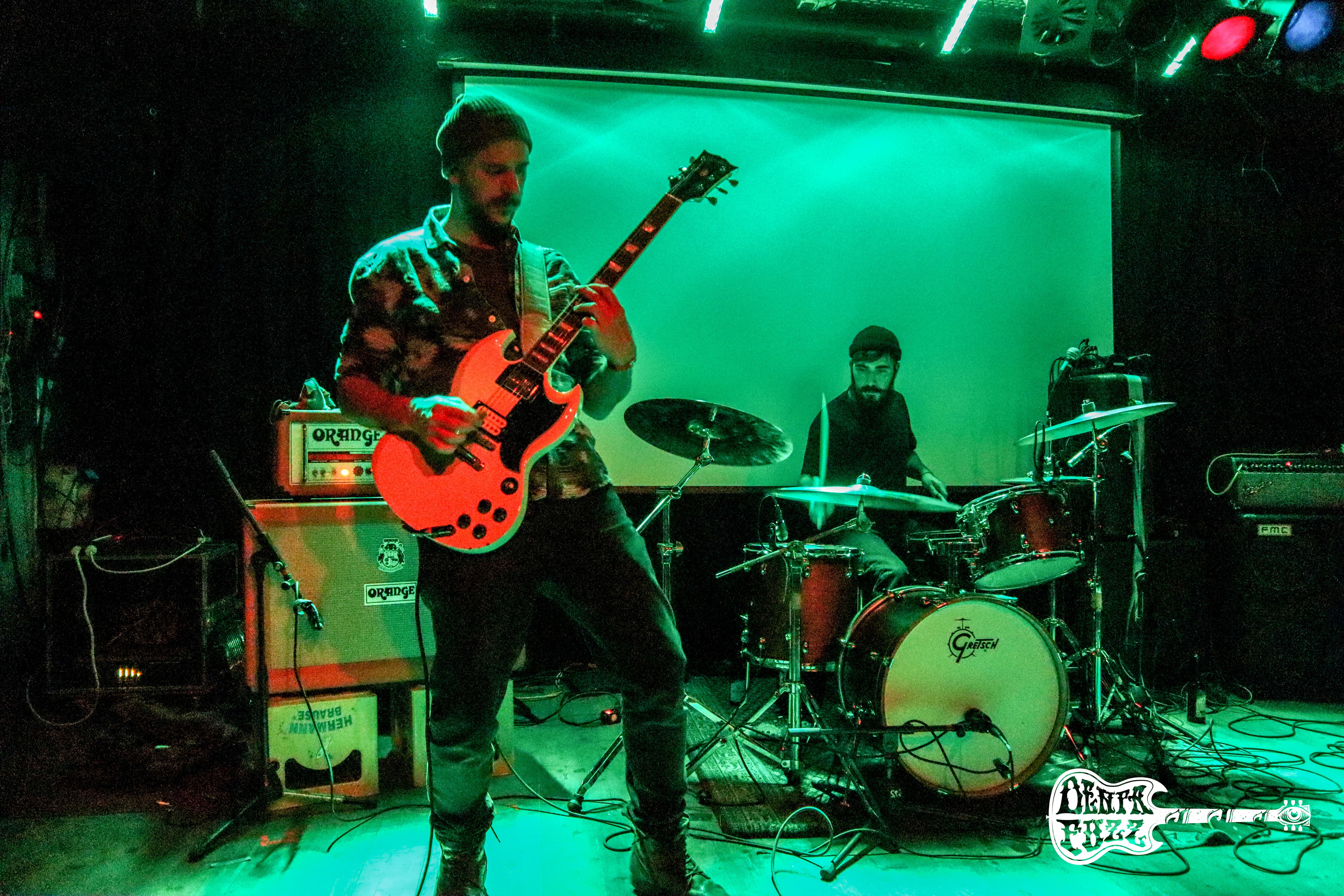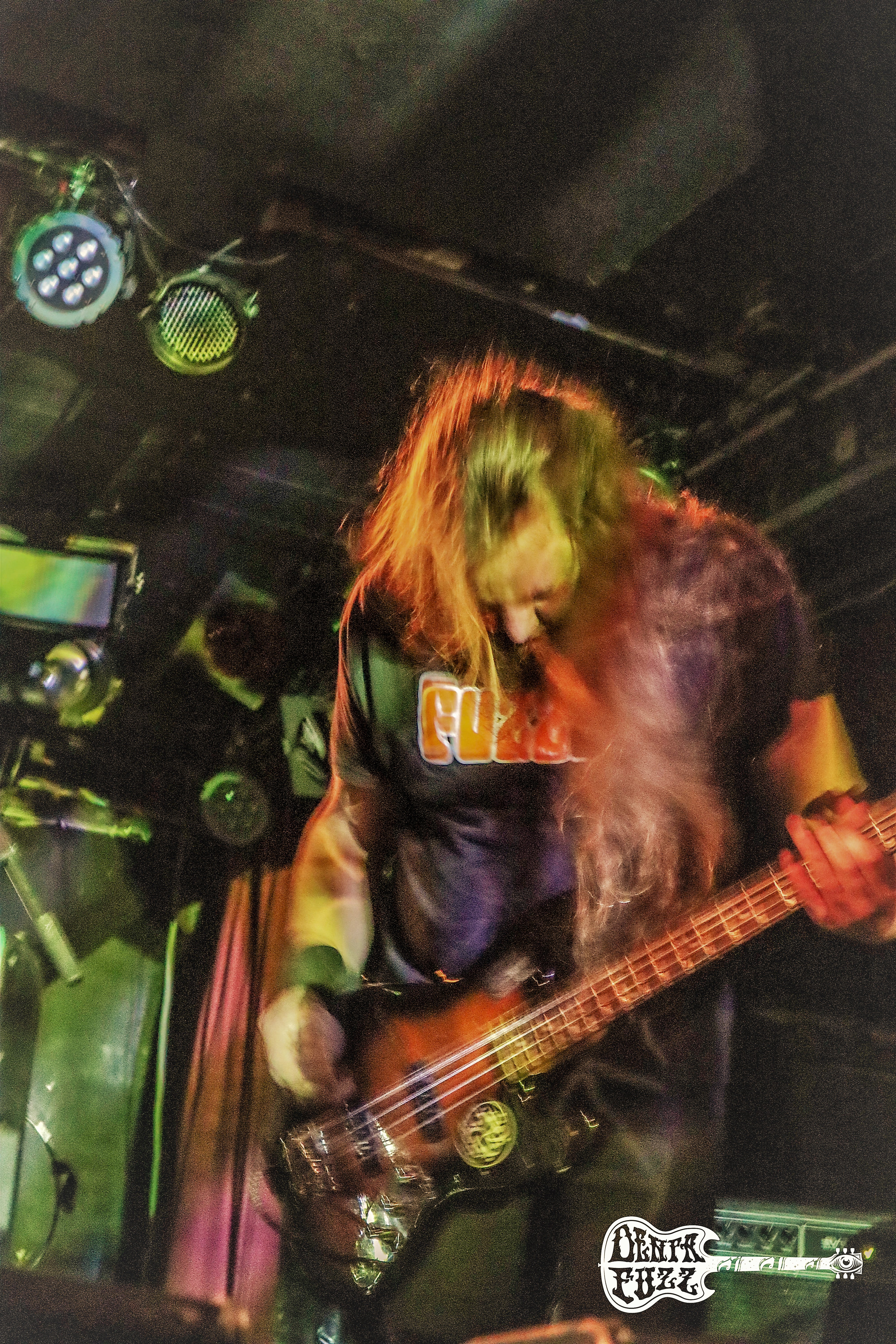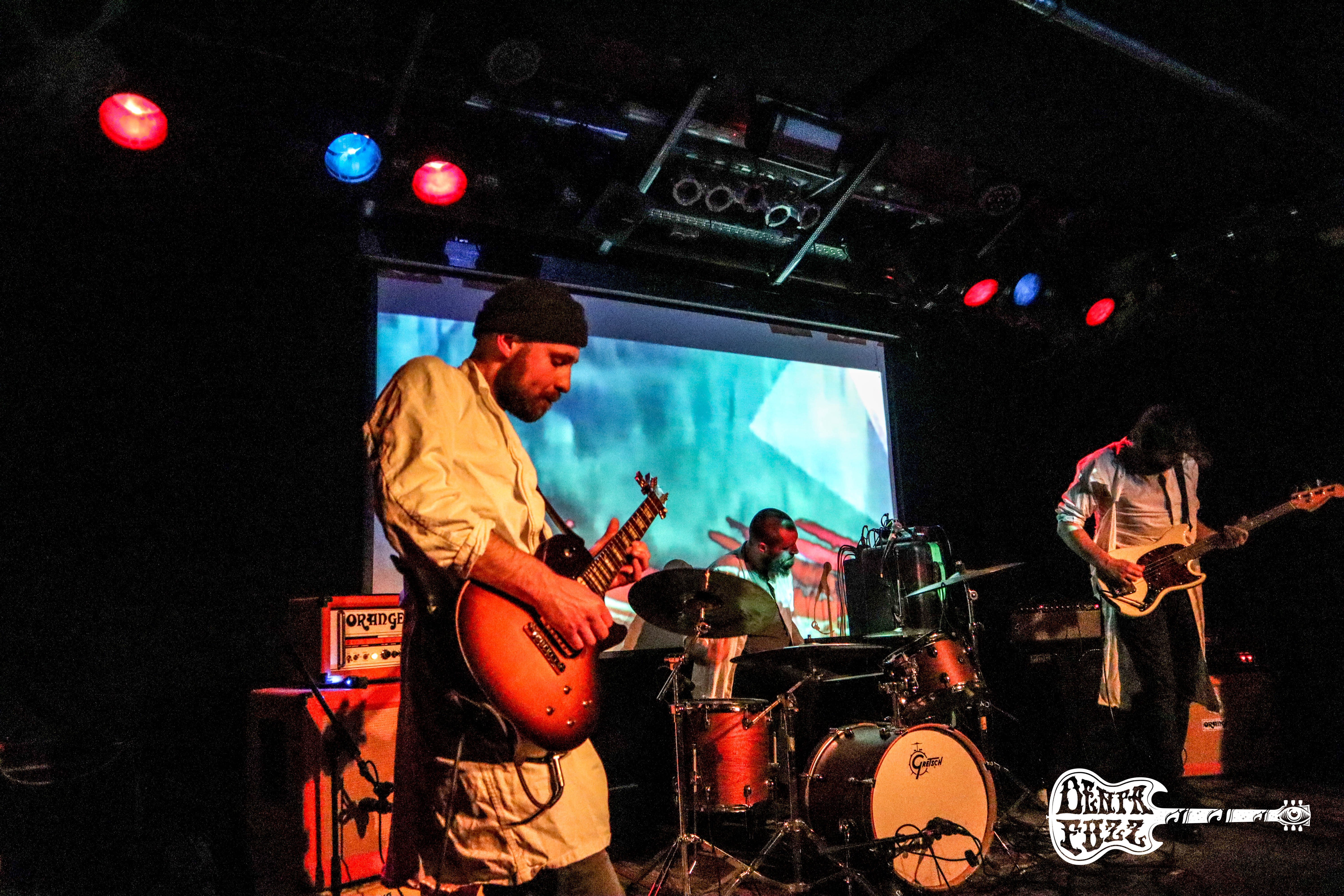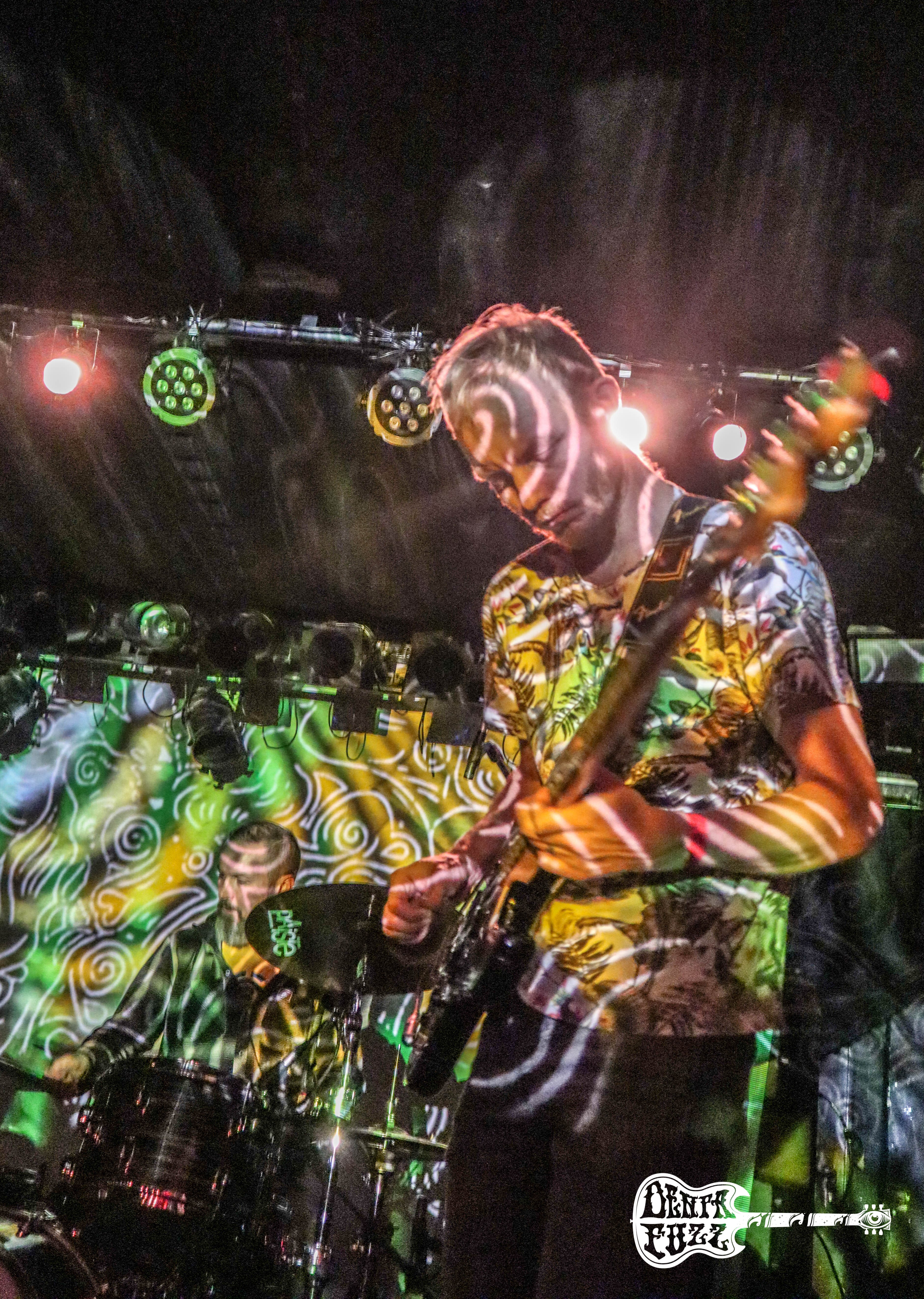 BISMUT eran los encargados de abrir la jornada alrededor de las 8.30 de la noche. El trío holandés dejaba patente que son una banda solvente y asentada, que se está convirtiendo en una formación a tener en cuenta en la escena heavy-psych europea. Sus oscuros viajes lisérgicos eran custodiados por momentos de post-metal, en los que ponían el músculo a sus largos pasajes instrumentales. Hacía poco menos de un mes había tenido la ocasión de ver en directo a los holandeses en el marco del Desertfest Amberes. En aquella ocasión la banda tocaba en el escenario pequeño, y a pesar de realizar un notable show, aquí, pudo desarrollar toda valía. La ambientación del light-show de Peter encajaba perfectamente con el sonido psicotrópico de la banda, lo cual suponía un plus para que su actuación fuera fantástica. Perfectamente equilibrados y sin ningún tipo de artificio, los tambores de Peter retumbaban con una ejecución milimétrica de los ritmos. Los devaneos y solos de guitarra ácida se complementaban con un sonido grueso de su bajista Huibert. De esta manera encandilaban a una audiencia que disfrutaba con su psicodélico espectáculo, llevándonos a un trance catártico.