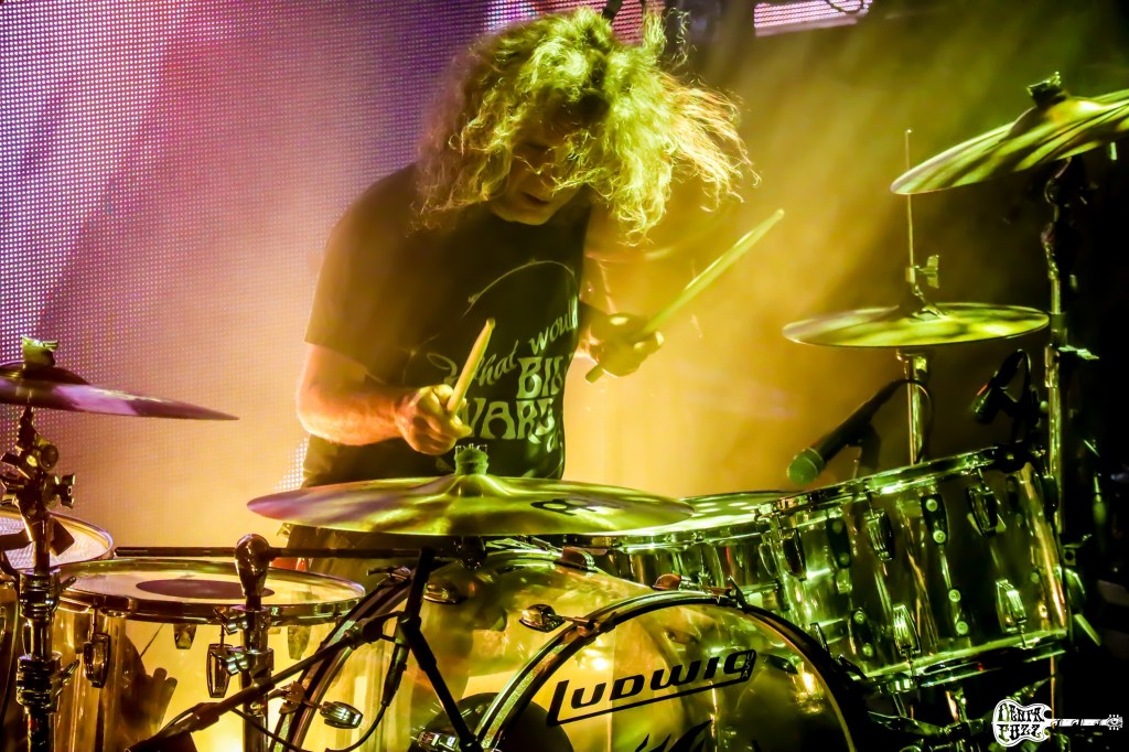 Con MONSTER MAGNET las expectativas estaban muy altas. Nunca había visto a la banda en directo y mi curiosidad era mucha por ver como se desenvolvían sobre un escenario. Lo cierto es que el antecedente del día anterior en Bilbao en el que su líder y cantante Dave Wyndorf había ofrecido el concierto sentado me hacía tener ciertas dudas. Cumpliendo el horario a rajatabla, y con una audiencia de alrededor de 800 personas que abarrotaba la Sala But la audiencia recibía con una gran ovación a la banda seguramente más esperada del día. Con ‘Dopes To Infinity’ el quinteto abría una actuación con luces y sombras. Con su líder sentado en una silla durante todo el concierto y con la guitarra sobre sus piernas a modo casi testimonial MONSTER MAGNET comenzaban una actuación en la que algún problema de sonido impedía oír bien la voz (especialmente en las primeras filas. Un show en el que los sonidos cósmicos coparon un gran protagonismo aún siendo alternados con canciones más rugosas. Sin duda una puesta en escena bastante spciodélica acompñada por proyecciones de visuales tras los músicos. Un concierto sobrio y falto de algo de chispa en el que por los halagos que me habían transmitido de la banda en directo, MONSTER MAGNET no ofreció su mejor versión. Aún así los bailes del publico y el headbanging daban muestra de que el público se estaba divirtiendo. Mucha distorsión, sintetizadores, y riffs contundentes eran los ingredientes con los que los estadounidenses trataban de conquistar a una audiencia que se divertía, pero que no estaba viendo todo lo que esperaba. El concierto tuvo su punto álgido con su última canción ‘Space Lord’, en la que el estribillo era repetido con energía por toda la sala al unísono. Un final apoteósico para una actuación que no había sido tan entusiasta como hubiera podido esperarse. Correctos y alejados de sus mejores tiempos, su profesionalidad y solvencia hizo que no fuera una decepción.
