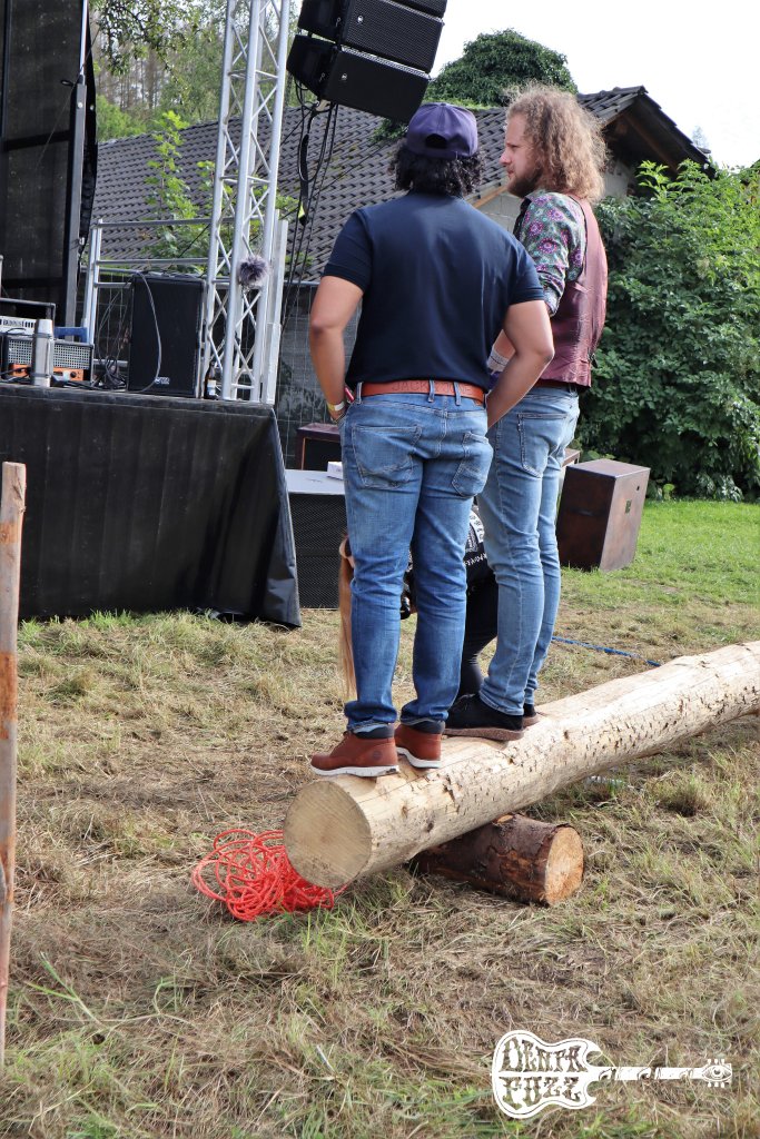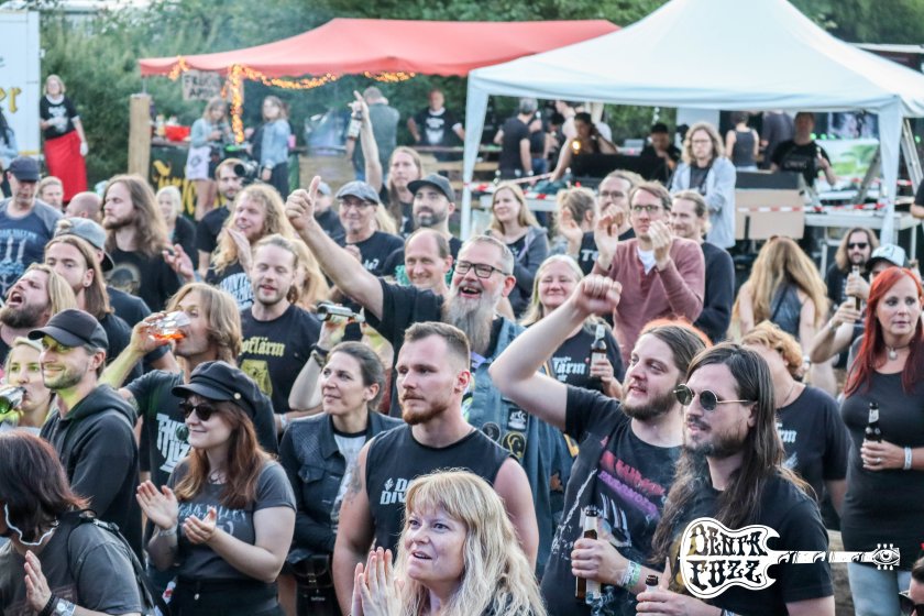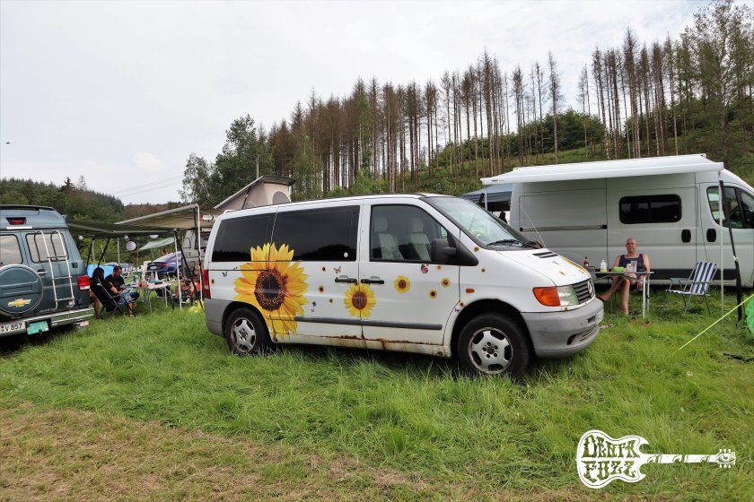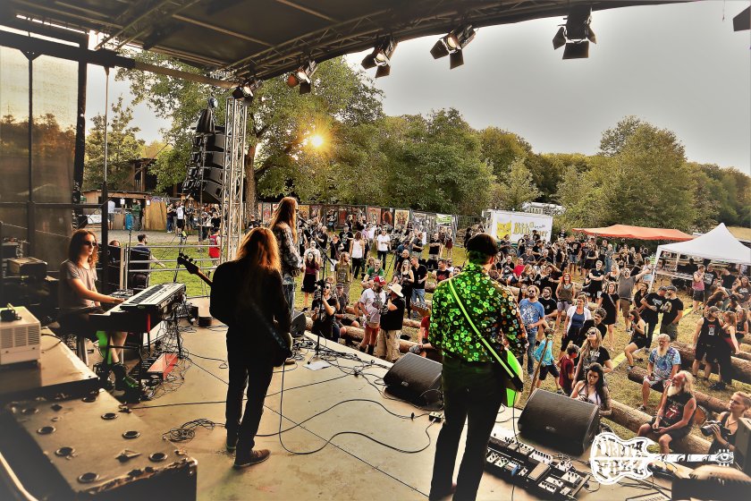 Por segunda vez en menos de una semana me dirigí a Alemania para a asistir a uno de los pocos Festivales que mantienen su edición. Aguantando sin sucumbir a las cancelaciones masivas y con medidas preventivas adecuadas para evitar los temidos contagios del Covid, en la pequeña localidad de Marienthal se llevaba a cabo los pasados días 13 y 14 de agosto un modesto pero magnífico festival. Enclavado en entorno privilegiado cercano al lugar en el que se celebra el mítico FREAK VALLEY, HOFLÄRM BACKYARD SESSION 2021 nos devolvía la ilusión por la música en directo con un fantástico line-up y un ambiente exquisito. La belleza del lugar me recuerdaba a la orografía del norte de España, con prados verdes y colinas custodiadas por bosques que me hacían augurar un gran fin de semana en un entorno idílico. Su ubicación se situaba en una granja perfectamente acondicionada con troncos a modo de bancos, una confortable zona de acampada y distintos servicios para que la gente se sienta lo mas cómoda posible. La cercanía al lugar en el que se celebra el FREAK VALLEY hace que mayoritariamente la concurrencia fuera de habituales de dicho festival, nombrándolo como si de su su hermano pequeño se tratara. Con unos medios rústicos, la organización consigue que el lugar se muestre acogedor y se convierta en un oasis de paz, de camaradería, algo que se palpa con los múltiples encuentros de gente ávida de música en vivo. Con estos elementos la fiesta estaba asegurada. Unas horas antes del comienzo del mismo iban llegando los habituales de estos eventos a una colorista zona de acampada en la que las camper y las grandes tiendas con tenderetes y mesas iban ocupando el espacio destinado para acampar. La cerveza corría de mano en mano, y cada vez que me acercaba a saludar a alguien, recibía una invitación de bienvenida, lo cual siempre es de agradecer. Si bien la primera jornada sufrió un importante retraso en su comienzo, cuando todas las adversidades técnicas y logísticas fueron solventadas ,aquello comenzó a ser lo que me esperaba, un gran fin de semana de fiesta con buena gente y buenas bandas. La organización había dispuesto distintos puestos de comida y bebida, así como unos servicios junto a la zona de acampada. La zona no contaba con duchas, pero esto había sido resuelto por la organización habilitando las duchas de un monasterio situado en el pueblo cercano, para la comodidad de los asistentes que por solo dos euros podían refrescarse y asearse. Estábamos en un medio rural y los elementos de labranza servían para que aquello se convirtiera en un sorprendente recinto en el que disfrutar. Con un público curtido en mil batallas, la calma y la ausencia de incidentes, hacía que la estancia fuera agradable y gratificante para cualquiera de los asistentes. Un público que se comportó con civismo y que cuidaba de sus desechos para mantener el entorno impoluto, algo que siempre es de agradecer y que no siempre sucede en otros lugares. Con un aforo limitado por las restricciones de la pandemia y con la obligatoriedad de acreditar vacunación o prueba negativa de Covid, el festival había colgado el cartel de sold-out hacia varias fechas. Sin duda, teniendo en cuenta lo visto en ediciones anteriores, HOFLARM es un festival con potencial para crecer y hacerse un hueco en la escena en vivo alemana, tanto por la calidad de las bandas que presenta, como por el respaldo que tiene del público. Un público mayoritariamente local, ya que no eran muchos los foráneos que allí estábamos, pero aún así, la hospitalidad hacía que nos sintiéramos como en casa. Tras muchos reencuentros con amigos alemanes, y con estos condicionantes, solo quedaba disfrutar de un fin de semana que a la postre resultaría mágico y muy gratificante. La hospitalidad y facilidades de Casper, el promotor del evento, hizo que me sintiera como en casa, para poder relataros lo acontecido. El recinto se encontraba rodeado de carteles de pasadas ediciones del Freak Valley, así como distintos elementos como un curioso vehículo accidentado junto a unas cruces que marcaban la seña de identidad del festival. Un escenario modesto, pero suficiente para albergar un evento de estas características y unos juegos de luces efectivos entre efectos de humo presidían la mayoría de las actuaciones. Probablemente, desde el aforo no podía comprobarse que en realidad el escenario era un remolque reconvertido, lo que hace todavía más peculiar el mismo. Sin duda, un lugar en el cualquiera se puede sentir cómodo. Si en un principio, el recinto estaba diseñado para estar sentado, la amplitud del mismo hacía que junto al escenario la gente pudiera estar de pie, bailando y disfrutando de la música, algo que sucedió en la mayoría de las actuaciones. Acostumbrado en el ultimo año y medio a ver conciertos sentado, guardando distancia de seguridad, en aforos reducidos y con la máscara puesta, la asistencia a Hoflarm, tal y como me había pasado una semana antes en Aquamaria, era como una vuelta a una cierta ‘normalidad’, ya que poder disfrutar de un festival sin estas limitaciones, es como una forma de recuperar la libertad. Lo cierto es que no es posible poner ningún reparo a un festival acogedor, cómodo y amigable en el que se puede disfrutar en armonía con la naturaleza en unas condiciones agradables y de camaradería mutua, algo que define la escena psicodélica y pesada en la que nos movemos. Desde aquí felicito a la organización por el arduo y duro trabajo, una tarea que se vio recompensada con la mejor edición del festival hasta el momento, (según me comentabas asistentes de pasadas ediciones), un festival que seguramente veremos tener una mayor visibilidad en ediciones futuras, y al que espero regresar de nuevo. Desde aquí gracias a la organización a todos los hicieron que mi estancia allí fuera tan placentera.