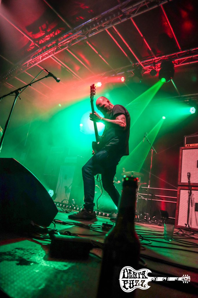EARTH SHIP, era una de las bandas que despertaba especialmente mi curiosidad. El trío nos ponía en órbita con su doom de tintes cósmicos sin renunciar al sludge de alcantarilla. Por momentos emulando a Hawkwind, la banda con su penetrante intensidad, activaba al personal en la noche con un sonido potente, poderoso, pero también chamánico y lisérgico. Gruesos, pesados y psicotrópicos EARTH SHIP acabaron encandilando al público con una actuación notable, convirtiéndose para muchos en los triunfadores de la jornada, lo que se corroboraba con la estruendosa ovación con la que fueron despedidos.