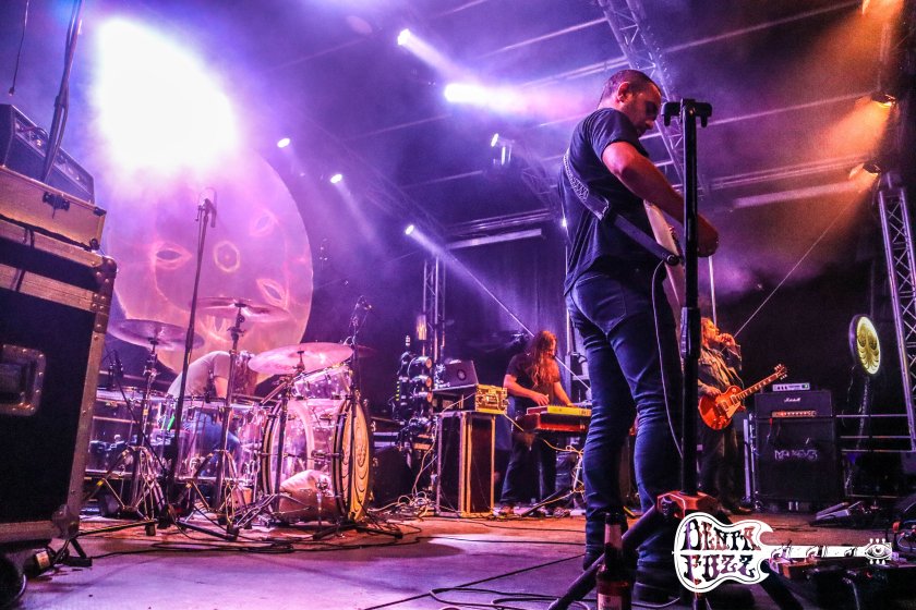 Los italianos GIÖBIA volvían a los escenarios tras un largo periodo sin actividad en vivo con una formación renovada. Habiendo cambiado su batería y ocupando el lugar en unos teclados en los que su cuervo se había quedado en el esqueleto, Melissa, (La Morte Viene Dallo Spazio), nos seducía con sus sonidos cósmicos. La banda despertaba la curiosidad de parte de la audiencia al verse confundidos por estas renovaciones. Lo cierto es que, GIÖBIA dejaron toda su esencia psico-espacial sobre el escenario de Hoflärm. Completando un show de algo más de una hora en la que los sonidos siderales hipnotizaban a un público ávido de recibir cualquier tipo de estímulo en forma de música. Por momentos emulando a Hawkwind, los milaneses hacían que la etérea atmósfera del festival levitara ante su ‘viajes’ interestelares. Contundentes y con riffs hirientes, la conjunción de elementos con las que la banda juega estuvo al nivel al que nos tiene acostumbrados. Prueba de ello fue la gran ovación con la que fueron despedidos por un público que disfrutó de sus excursiones psicodélicas a través de los confines de su particular universo sonoro. Sin duda, la gran calidad del sonido que vivimos a lo largo de las dos jornadas hizo que el cuarteto brillase en todo su esplendor. Para ellos, las largas horas de coche habían merecido la pena.