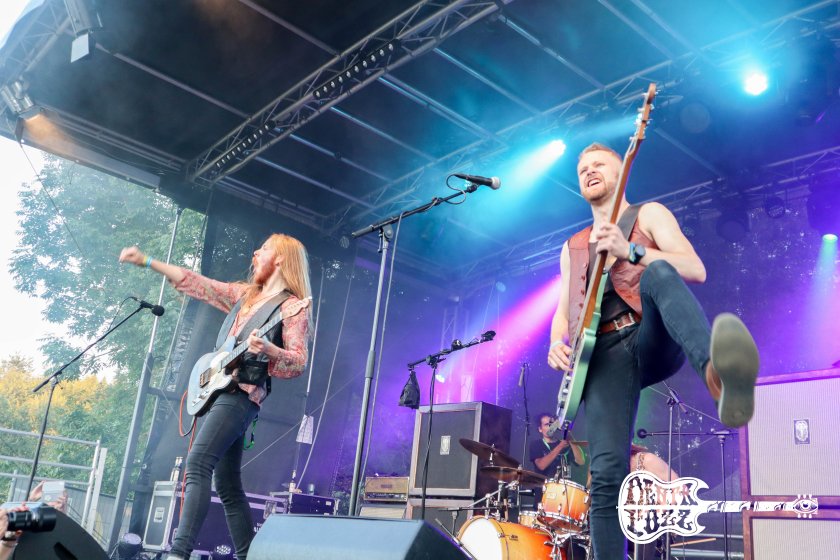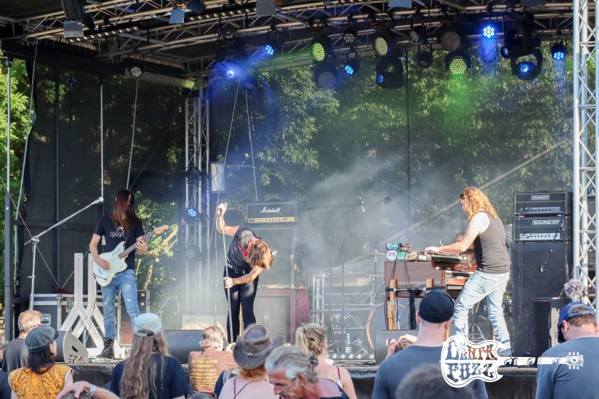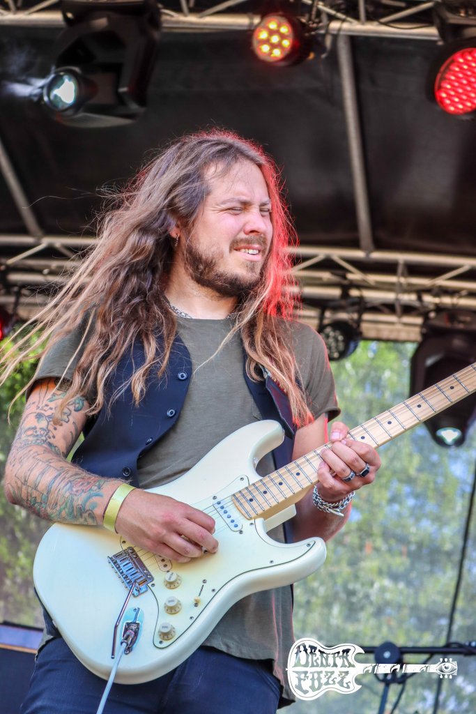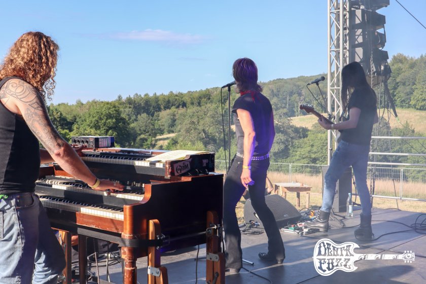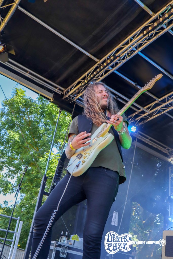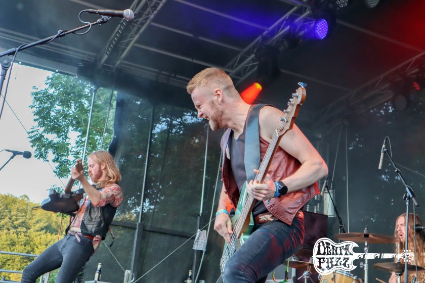 La jordana del sábado comenzaba sin los retrasos que habíamos sufridos el día anterior. Abrir una jornada de festival a las 3 de la tarde, con un sol de justicia, no es tarea fácil, pero sin duda, STEW hicieron que el calor ambiental se codeara con el calor meteorológico en un show que hizo vibrar a una audiencia que en gran parte se vio sorprendida por la calidad del trio de Örebro. Dejando patente todo su buen hacer en esto del hard-rock clásico, con sus dosis de blues, la banda ofreció un repertorio en el que interpretaron varias de las nuevas canciones que conformarán su segundo Lp, álbum que verá la luz en pocos meses y que a buen seguro corroborará las buenas sensaciones que nos dejó su álbum debut. Solos asesinos, con un fantástico groovy, hacían que cada canción activara las articulaciones de un público que, pertrechado a la sombra, al comienzo de su actuación, fue viéndose atraído hacia un escenario del que salía fuego en forma de rock and roll honesto y sin complejos. STEW es una magnífica banda y en el marco de Hoflärm, lo dejó patente. ¡¡Grandiosos!!