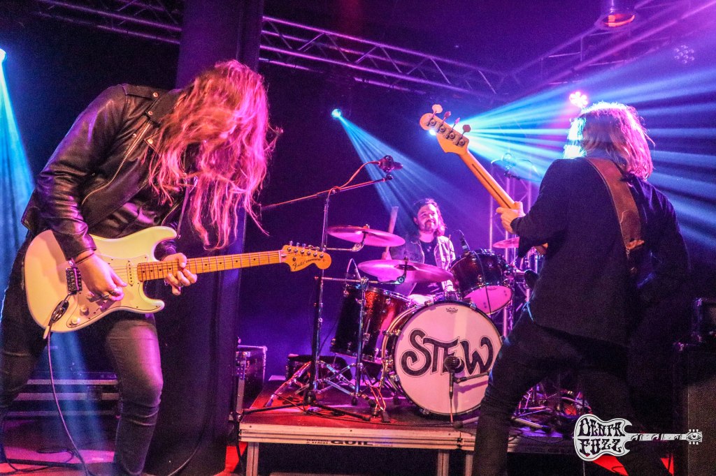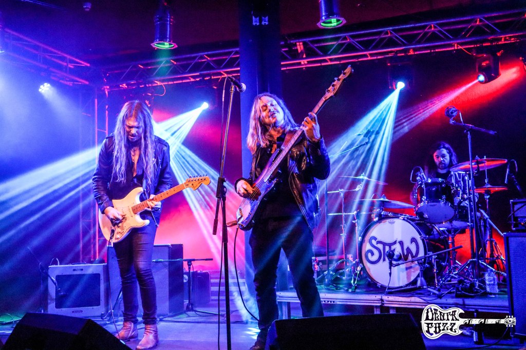 La actuación proseguía con ‘Afraid’, para volver a rendir tributo a los clásicos con otra fantástica versión del ‘Hey Joe’ que popularizó el mismísimo Jimi Hendrix. La noche ya no tenía vuelta atrás, y a pesar que todos hubiéramos deseado una sala llena, los presentes estábamos disfrutando de una actuación de alto nivel. Tras ‘Right’, STEW se despedían dando por terminada su actuación. La insistencia del público hacia que breves instantes después regresaran al escenarios para interpretar dos canciones más, ‘The maker’ y ‘Sunshine’ fueron las elegidas para completar una actuación impoluta y sobresaliente con la que conquistaron el público extremeño en esta primera visita a España. La banda me comentaba que les hubiera gustado que la sala hubiera estado mas llena de gente, pero la escena underground tiene esto, que una magnífica banda toque para una audiencia reducida, es la misma historia de siempre. Esperemos que alguna vez esto cambie de alguna manera, y los músicos talentosos puedan tener del público todo el calor que merecen. Habían pasado unos 70 minutos y el público se acercaba al escenario y al puesto de merchan a felicitar a los músicos, hacerse fotos con ellos, y comprar sus álbumes y camisetas.