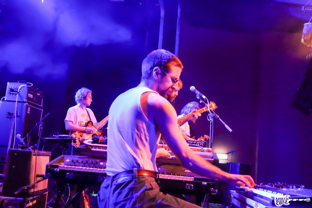 El festival se iba acercando a su ocaso, pero todavía nos quedaban emociones fuertes por vivir. El penúltimo concierto que me quedaba por disfrutar era el de los franceses SLIFT. Poco mas se puede decir de ellos, tras los largos ríos de tinta que se ha escrito. Una de las bandas más electrizantes, enérgicas y psicotrópicas de los últimos años. Sus actuaciones son de las que te dejan exhausto y en Berlín no iba a ser de otra manera. Con la batería en la parte delantera del escenario custodiada por la guitarra y el bajo, la orgía sónica comenzó desde los primeros riffs. Un vendaval de luces y su sonido aturdidor inundaban el Columbihalle ante el delirio de sus acólitos. Sin pausa, sin darse un respiro desbrozaban sus canciones sin tiempo para recuperarte de us embestidas. Su magnifica puesta en escena con luces diabólicas que cambiaban ala velocidad de un cometa surcando el cosmos, su psicodelia de inspiración Hawkwind, nos golpeaba sin darnos tregua. Una vez más, los franceses nos ofrecieron una experiencia sensorial de lato nivel, manteniendo el estatus de banda frenética y sumamente psicotrópica. Un banda que te mete en su particular agujero negro, un mundo sin salida que siempre ofrece gratificantes sensaciones. Exuberantes y lisérgicos en grado máximo, como siempre.