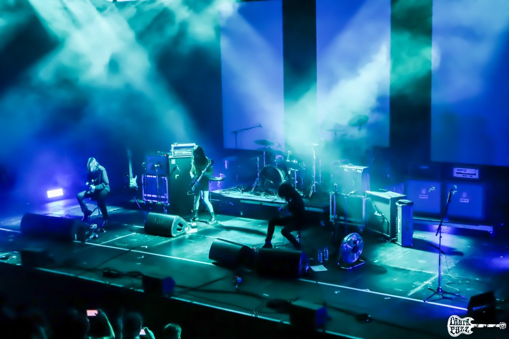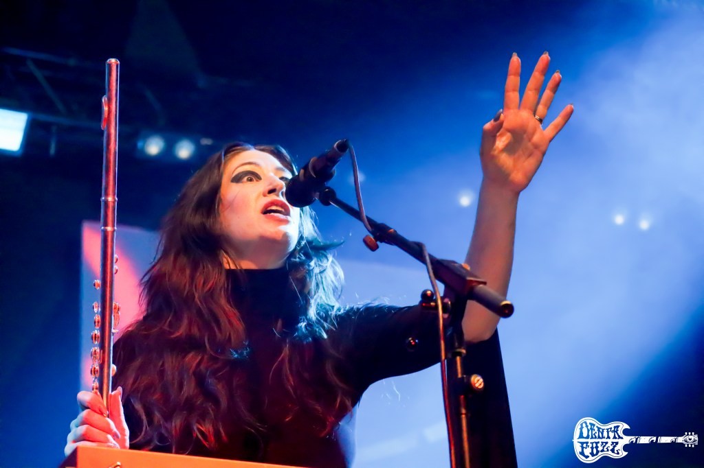 Con la sensación de que la jornada iba a ser dura por el tema de los distintos solapes, asumí la situación y me trasladé al escenario principal donde los canadienses BLOOD CEREMONY comenzaban su actuación. Comandados por su cantante, flautista y teclista Alia O’Brien, situada en el centro del escenario y con las buenas sensaciones que me había dejado su último disco, el primero en siete años, la banda destilaba magia en cada una de sus canciones. Con su líder haciendo las veces de suma sacerdotisa, me encontré con una banda solvente, bien ensamblada y que ejecutaba sus canciones con precisión y magia. Existen muchas bandas en la escena con una cantante que hace las veces de dueña de la oscuridad, pero BLOOD CEREMONY van mas allá. Esquivando los estereotipos estos chicos componen y tocan canciones maravillosas con las que es difícil no caer rendido a sus pies. El público disfrutando de sus embestidas inmersos en un auténtico cuento de hadas. El potencial y carisma de Alia, nos trasladaba a un escenario más propio de cuentos y leyendas. Un espacio en el que caben los riffs ácidos, los ritmos coloristas y un espíritu amable presidiendo cada canción. Aunque la banda tiene ese tono ocultista, su repertorio abarcaba momentos de blues, de rock progresivo, de psicodelia, y de ocult-rock, reflejando un talento infinito. Una de las actuaciones con las que más disfruté, y una de las mas brillantes del festival.