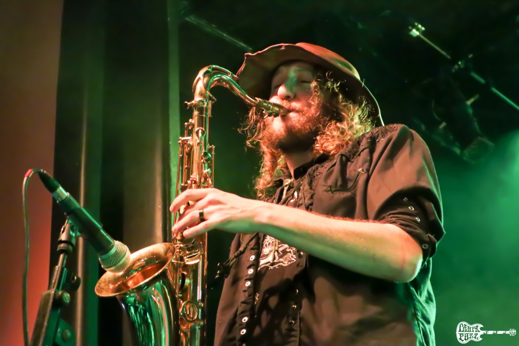 Sin demora, me apresuré a tomar posiciones en el segundo escenario, donde ECSTATIC VISION actuaban a continuación. Conociendo de sobra a la banda y habiéndoles visto en Madrid unos días antes, sabía de sobra lo que nos esperaba. El desenfreno, la psicodelia espacial y eso carácter proto-punk que hacen aflorar en algunos momentos son un aliciente suficiente para que todo vaya bien. Mis previsiones se cumplían con una sala llena que bailaba cada canción. Esa combinación de saxo y distorsiones es apoteósica. Si a eso unes como afrontan estos chicos sus actuaciones, el éxito está garantizado. No faltaron los paseos con el saxo entre el público y los revolcones sobre el suelo, algo ya habitual en cada una de sus actuaciones. Ellos son una banda que sabes que la van a liar, y en Berlín, la liaron una vez más. Seguramente la comparación con Hawkwind sea lo suficientemente acertada para poner en el camino a a aquellos que desconocen su música. ¡¡Enormes!!