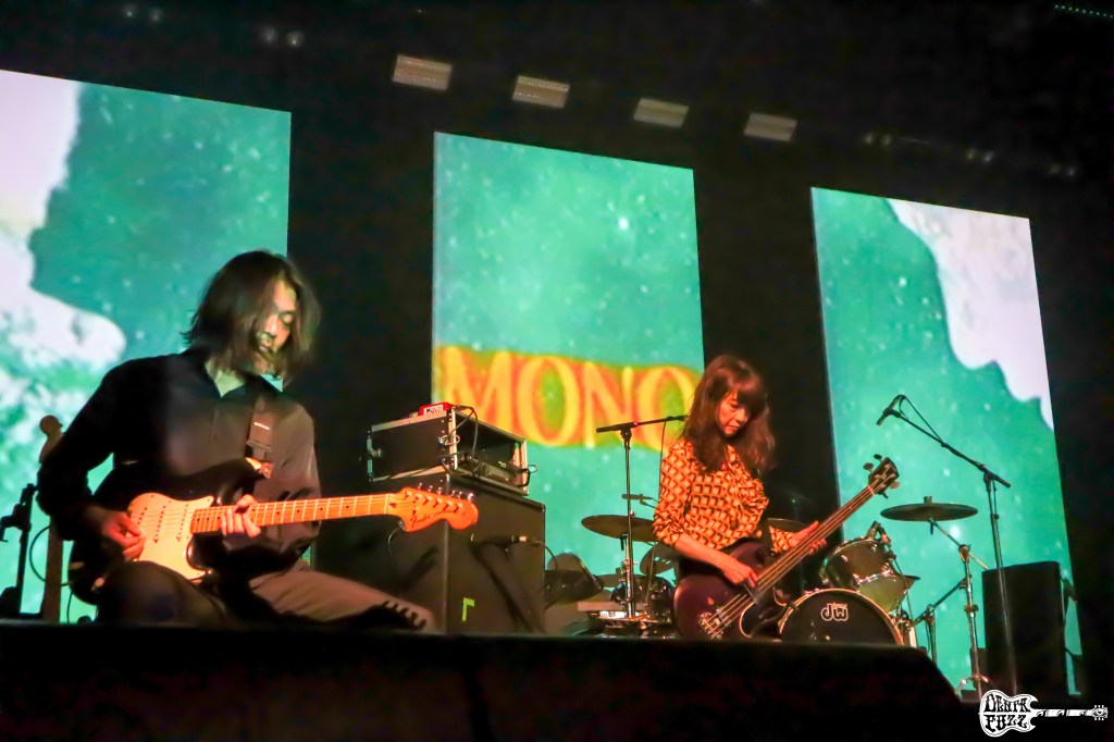Llegaba la hora de los japoneses MONO, otra de las banda que tenía marcadas en mi agenda. Una banda que nunca había visto en directo y que rompía de alguna manera con el resto de las bandas del festival. Está claro que MONO son una banda diferente, algo que pude comprobar ya en los preparativos previos al comienzo de su actuación. Con sus dos guitarristas sentados cada uno en un extremo del escenario y su bajista en el centro junto a la batería, me hacía presagiar que algo grande podía suceder. Ya desde la primera canción conecté con su mística. Sus sonidos celestiales ejecutados con una precisión a la altura de lo que puedes esperar de un músico japones de estas características (todos son maestros y fantásticos interpretes) calaban en mi con fuerza. La calma entre tanto ruido vivido con las bandas precedentes era un bálsamo reconfortante. Si mirabas hacia el público, las caras de los presentes reflejaban un sosiego reconfortante, una conexión suprema entre mente y cuerpo liberadora de tensiones. Pero MONO no son una banda tradicional, y entre sus pasajes ensoñadores de post-rock de etiqueta, aparecían esas embestidas que caracterizan algunos de sus temas. Austeros y serios en la ejecución de sus canciones, los japones se veían arropados por una luminotecnia a la altura de la elegancia de sus canciones. MONO corroboraron todas mis expectativas erigiéndose como una de las mejores bandas del festival, a pesar de que su apuesta sonora se salía de los convencionalismos.